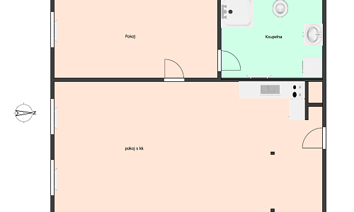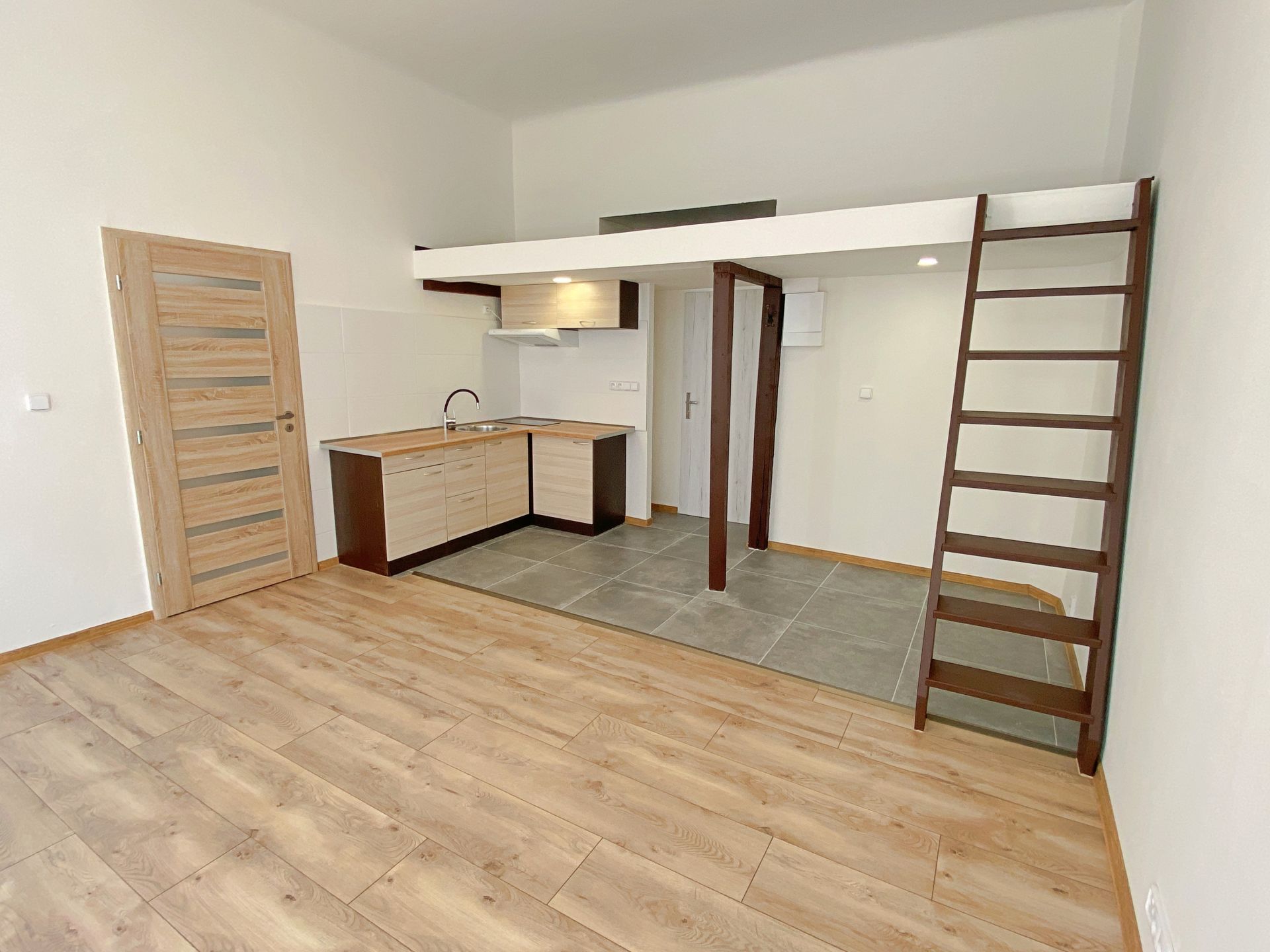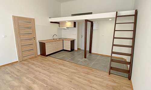 Byt je po rekonstrukci a skládá se z obývacího pokoje s kuchyňským koutem nad kterým je vestavěné menší patro a dále z menšího pokoje a koupelny. Okna jsou orientována na jižní stranu, do ulice Rozkošného.