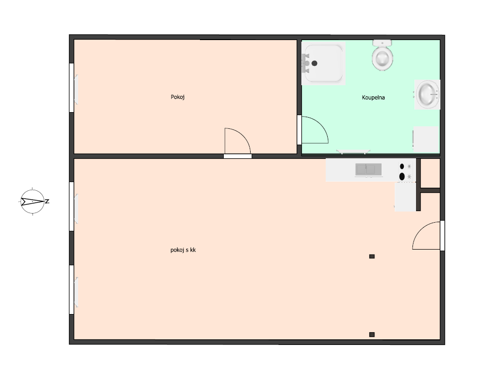 Nabízíme k pronájmu hezký byt 2+kk o velikosti 38 m2 ve 3. NP rohového domu s výtahem, v ulici Rozkošného, Praha 5 – Smíchov.
