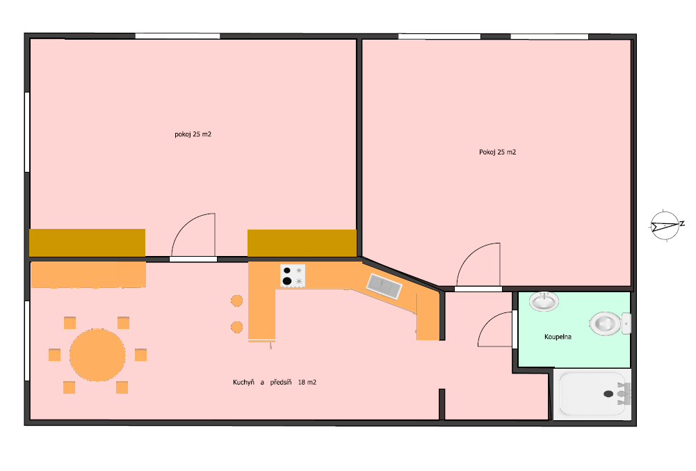 Nabízíme k pronájmu hezký byt 2+1 o velikosti 71 m2 ve 2. NP rohového domu s výtahem, v ulici Rozkošného, Praha 5 – Smíchov.