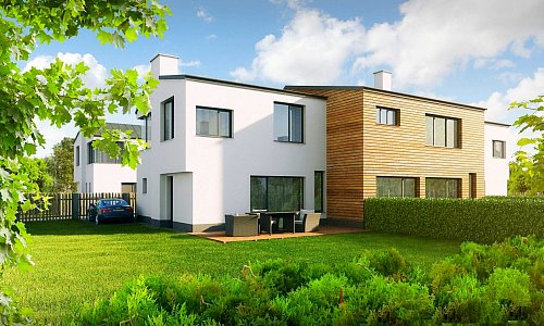 V těchto moderních dvoupodlažních rodinných domech naleznete klid, dostatečný prostor i soukromí.
